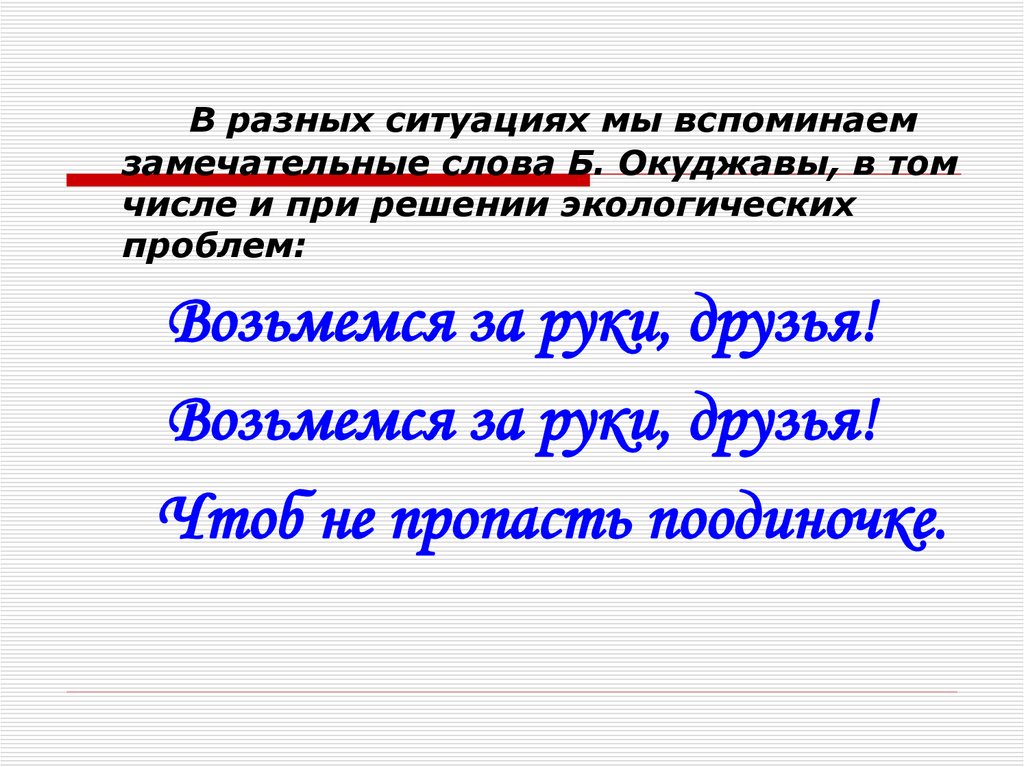 В разных ситуациях мы вспоминаемзамечательные слова Б. Окуджавы, в том