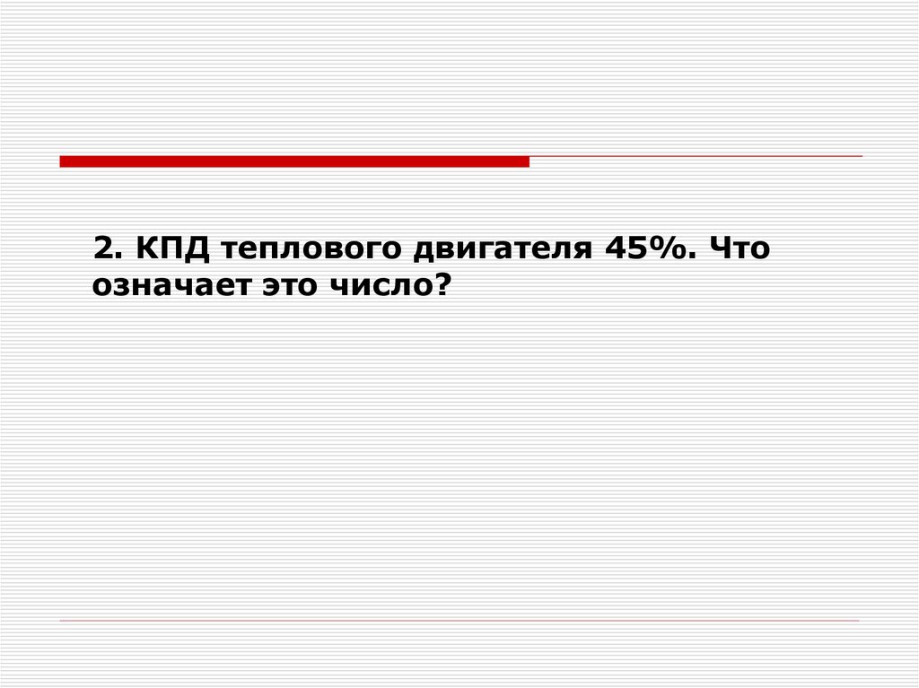 2. КПД теплового двигателя 45%. Чтоозначает это число?