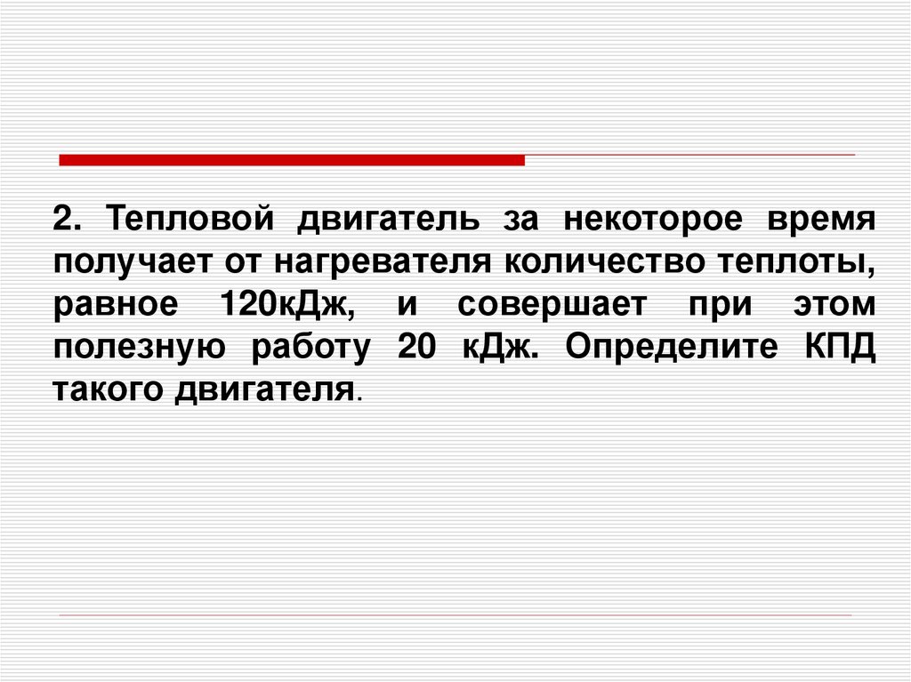 2. Тепловой двигатель за некоторое времяполучает от нагревателя количество теплоты,