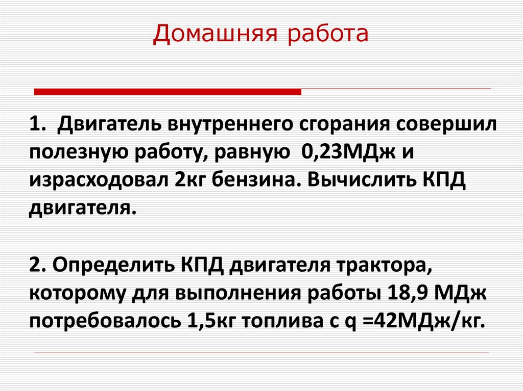 Домашняя работа1. Двигатель внутреннего сгорания совершил