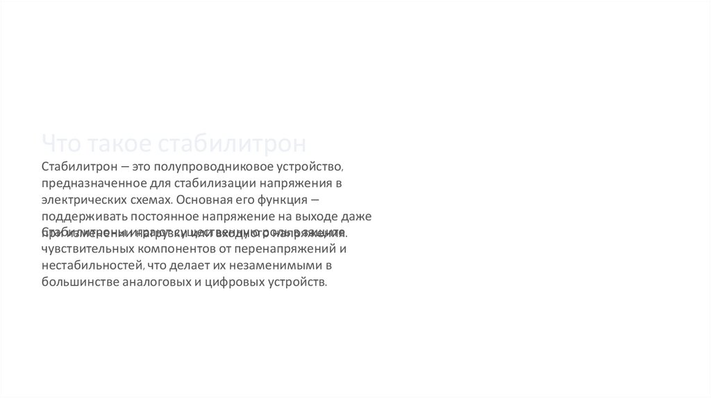Что такое стабилитронСтабилитрон — это полупроводниковое устройство,