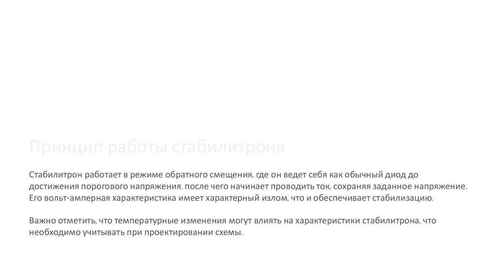 Важно отметить, что температурные изменения могут влиять на характеристики стабилитрона, что