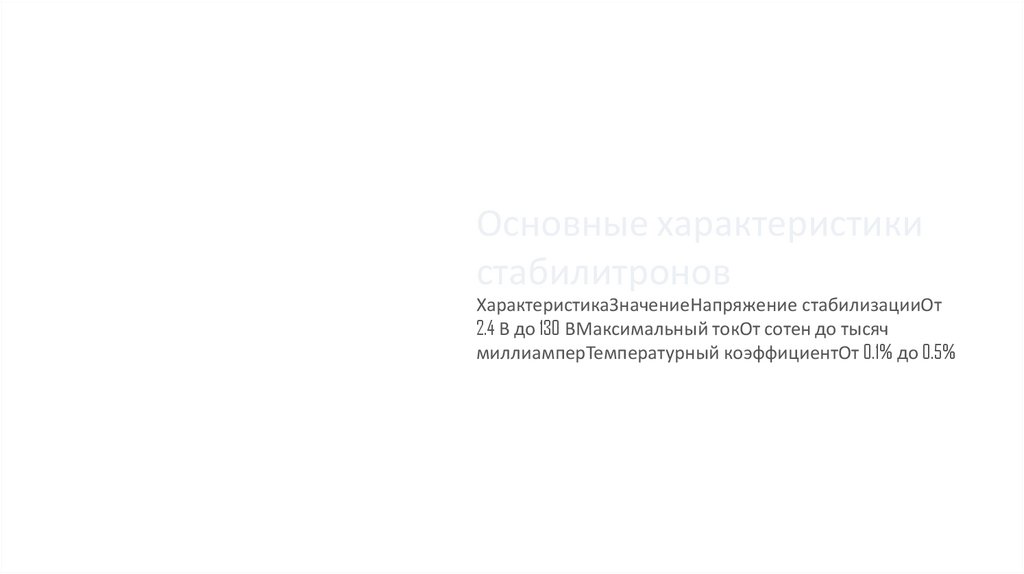 ХарактеристикаЗначениеНапряжение стабилизацииОт