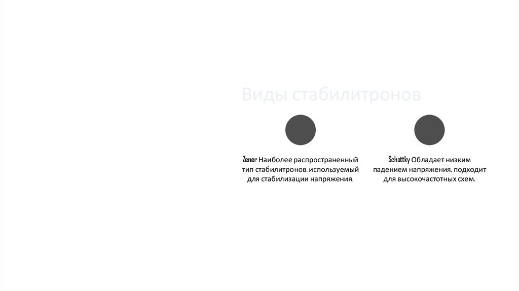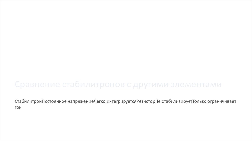 Сравнение стабилитронов с другими элементамиСтабилитронПостоянное напряжениеЛегко интегрируетсяРезисторНе стабилизируетТолько ограничивает