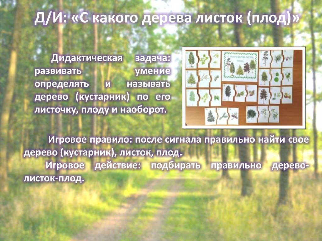 Д/И: «С какого дерева листок (плод)»Дидактическая задача: