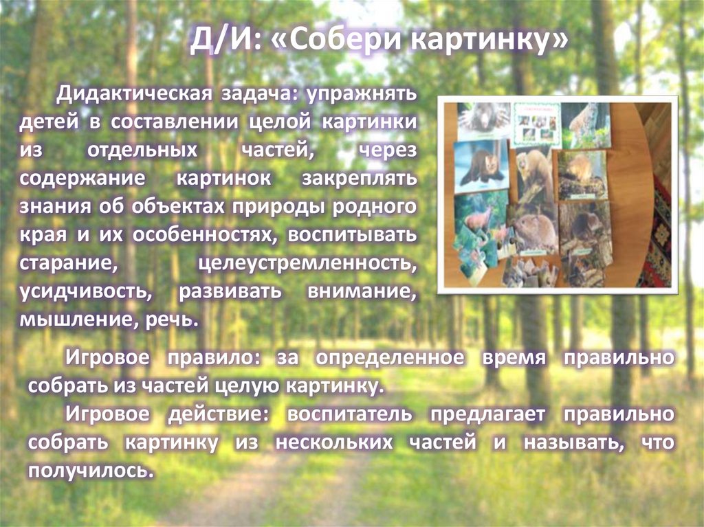 Д/И: «Собери картинку»Дидактическая задача: упражнять