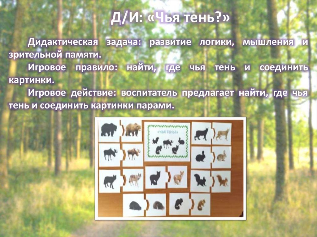 Д/И: «Чья тень?»Дидактическая задача: развитие логики, мышления и