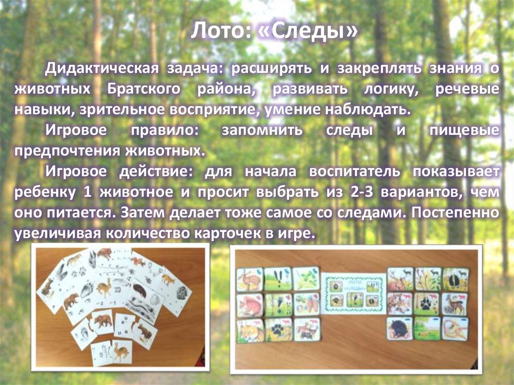 Лото: «Следы»Дидактическая задача: расширять и закреплять знания о