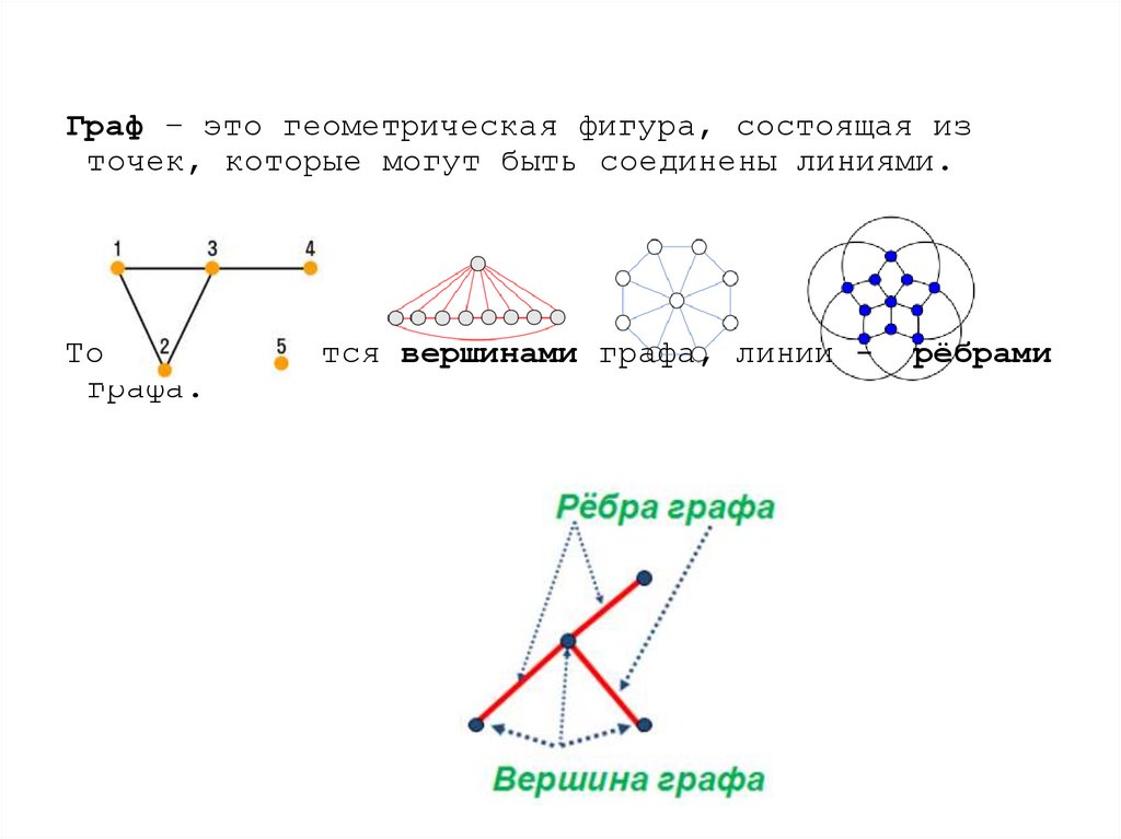Граф – это геометрическая фигура, состоящая източек, которые могут быть соединены линиями.