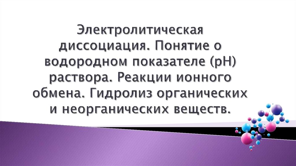 1. Электролитическая диссоциация. Понятие о водородном показателе (pH) раствора. Реакции ионного обмена. Гидролиз органических и