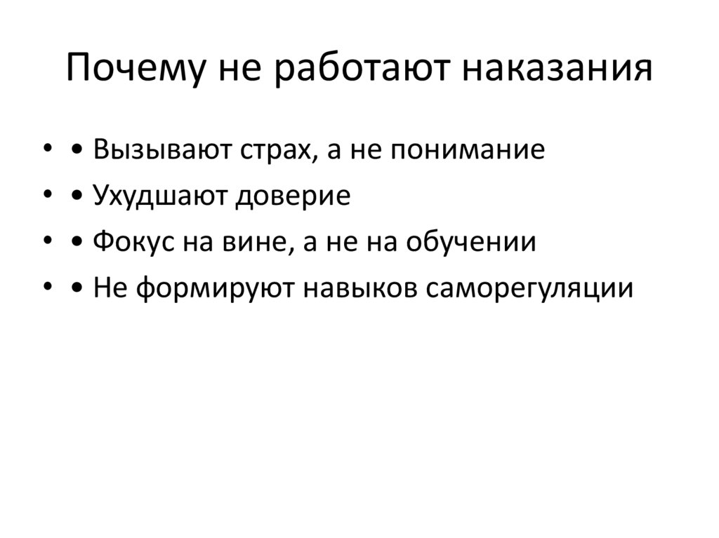 Почему не работают наказания• • Вызывают страх, а не понимание