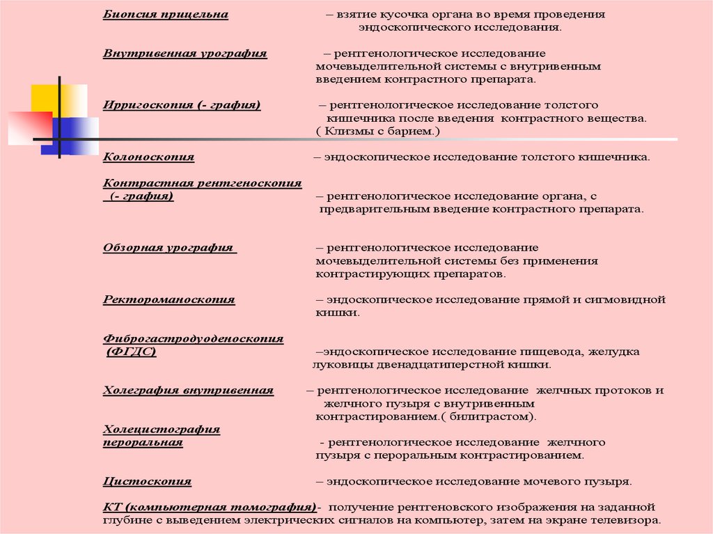 колоноскопия, цистоскопия, лапароскопия);