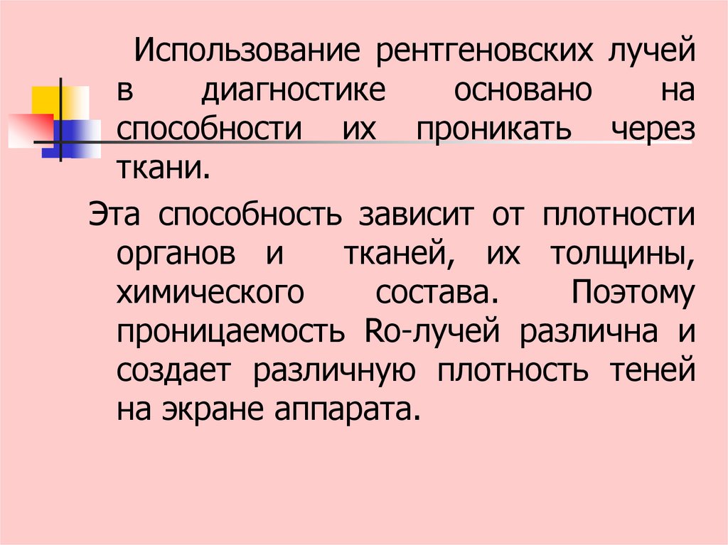 проницаемость Ro-лучей различна и