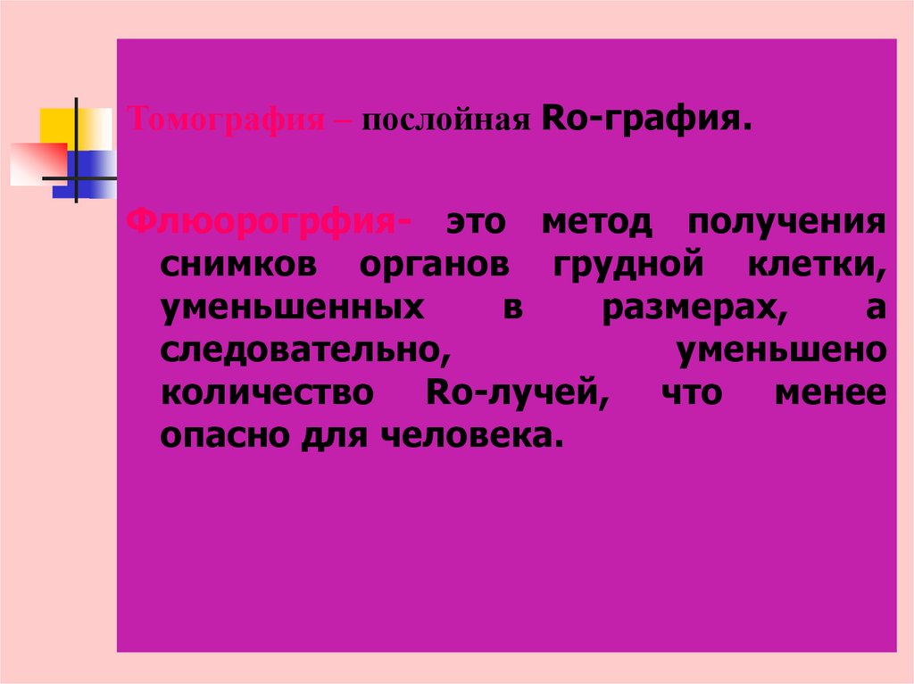 Томография – послойная Ro-графия.Флюорогрфия- это метод получения
