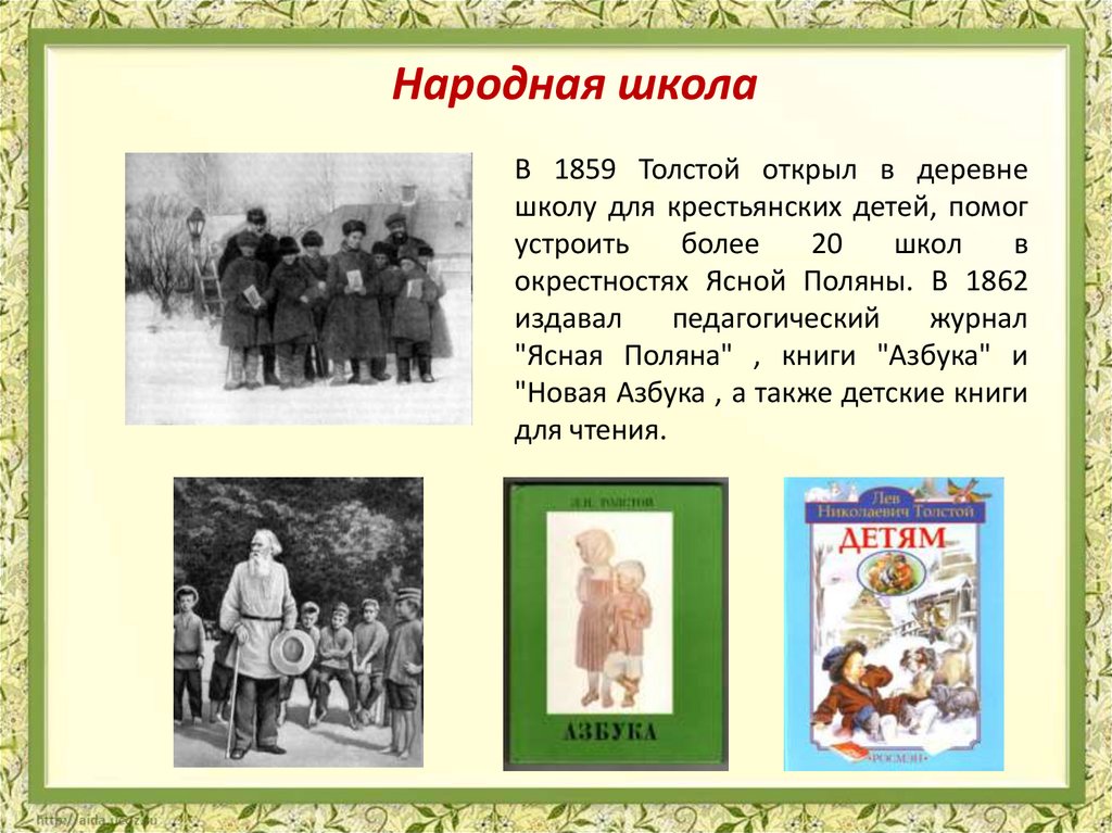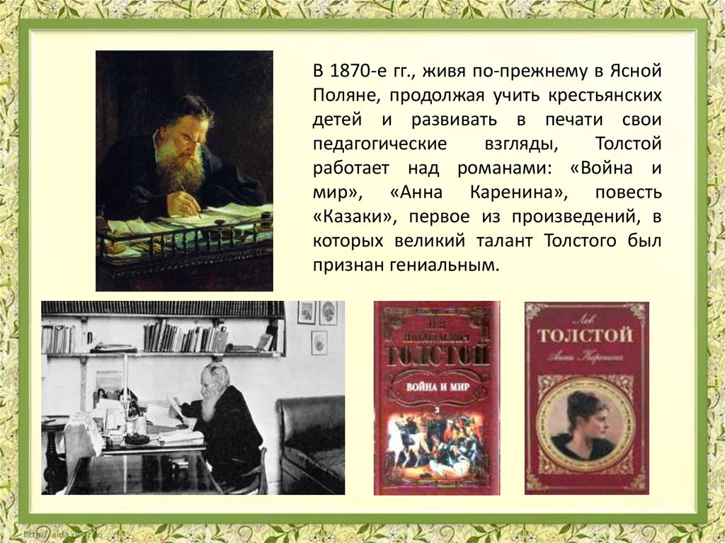 В 1870-е гг., живя по-прежнему в ЯснойПоляне, продолжая учить крестьянских
