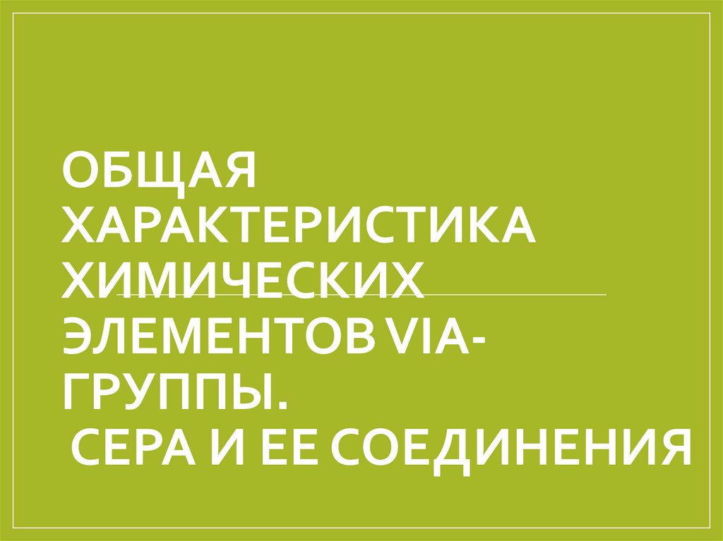 1. Общая характеристика химических элементов VIА-группы. Сера и ее соединения