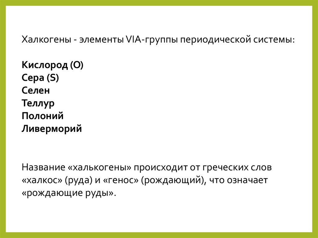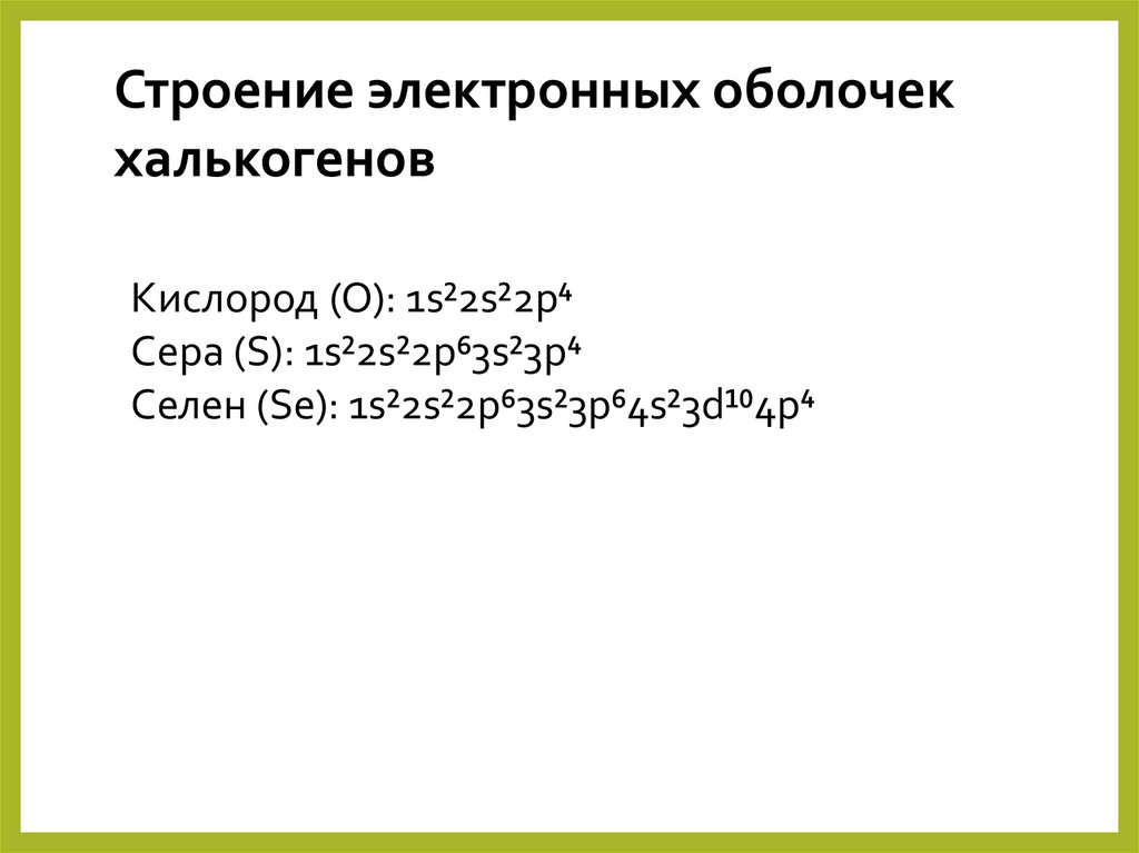 Халкогены - элементы VIA-группы периодической системы:Кислород (O)
