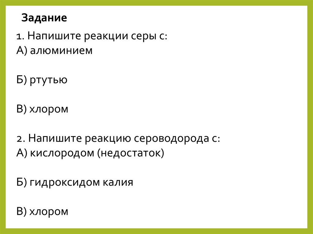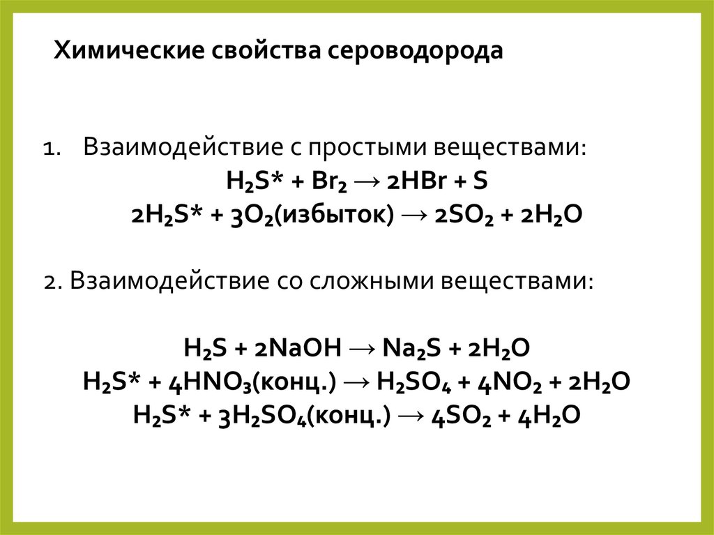 Химические свойства сероводорода1. Взаимодействие с простыми веществами: