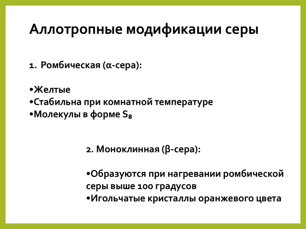 Аллотропные модификации серы1. Ромбическая (α-сера):