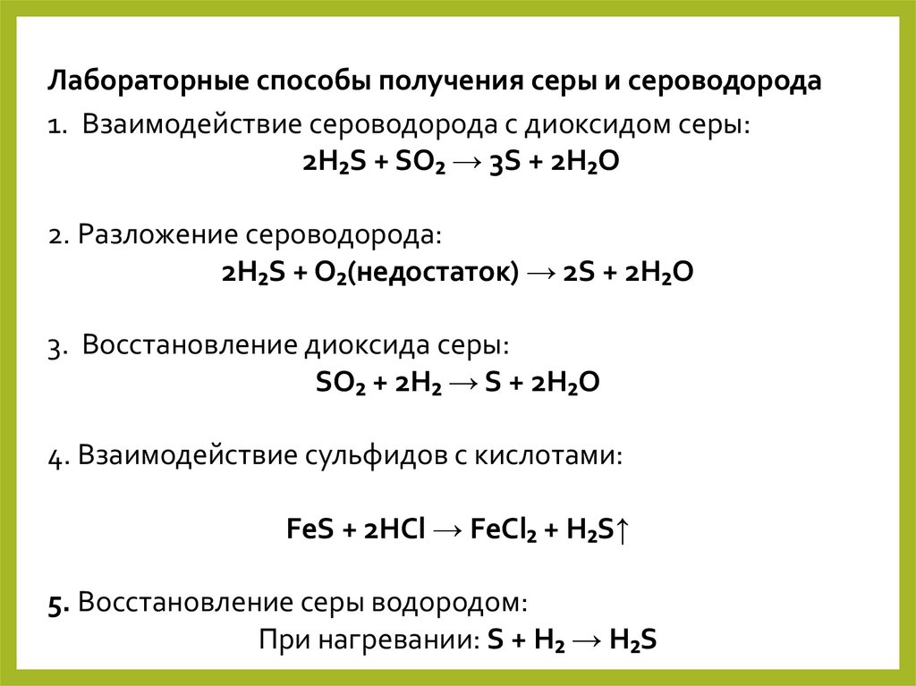 Лабораторные способы получения серы и сероводорода1. Взаимодействие сероводорода с диоксидом серы: