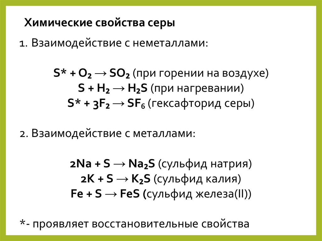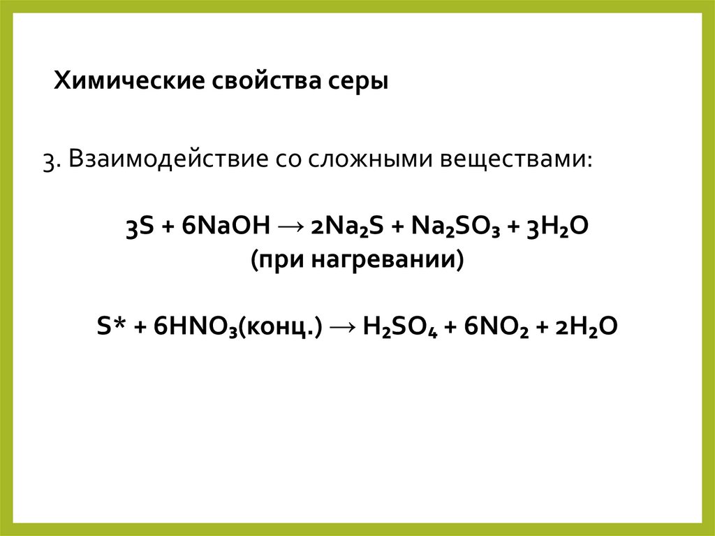 Химические свойства серы3. Взаимодействие со сложными веществами: