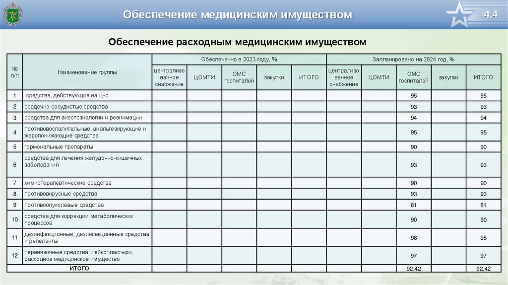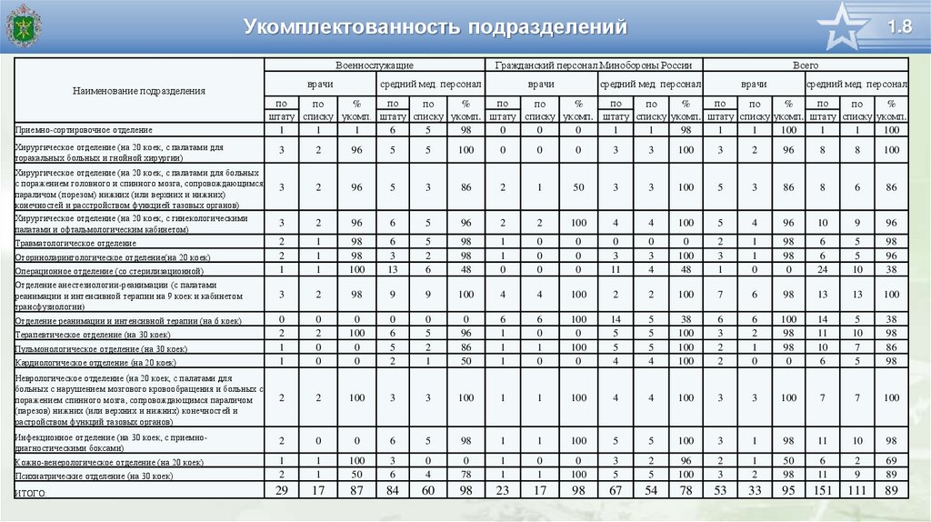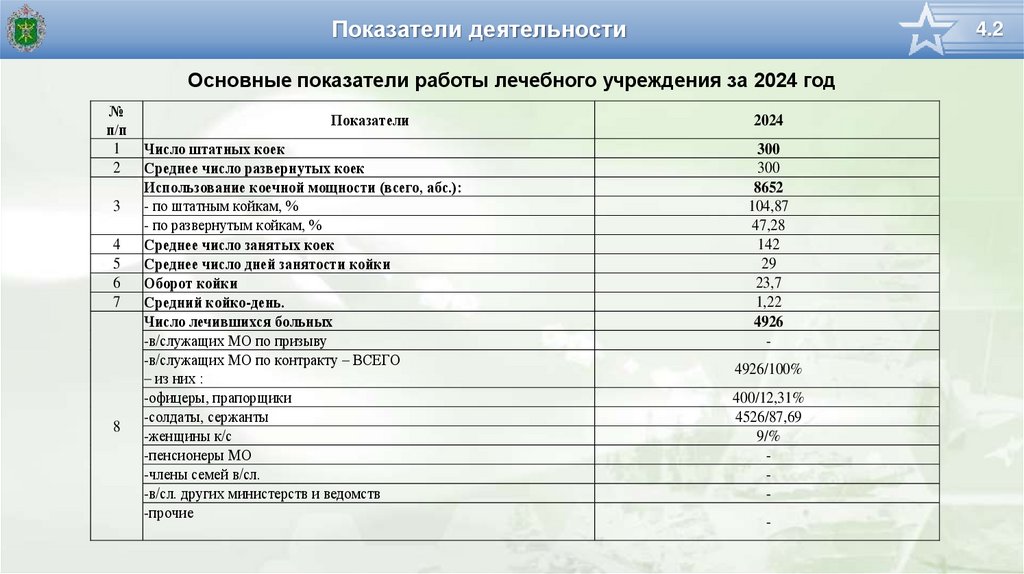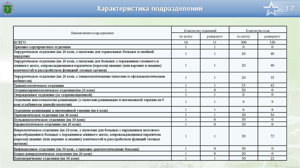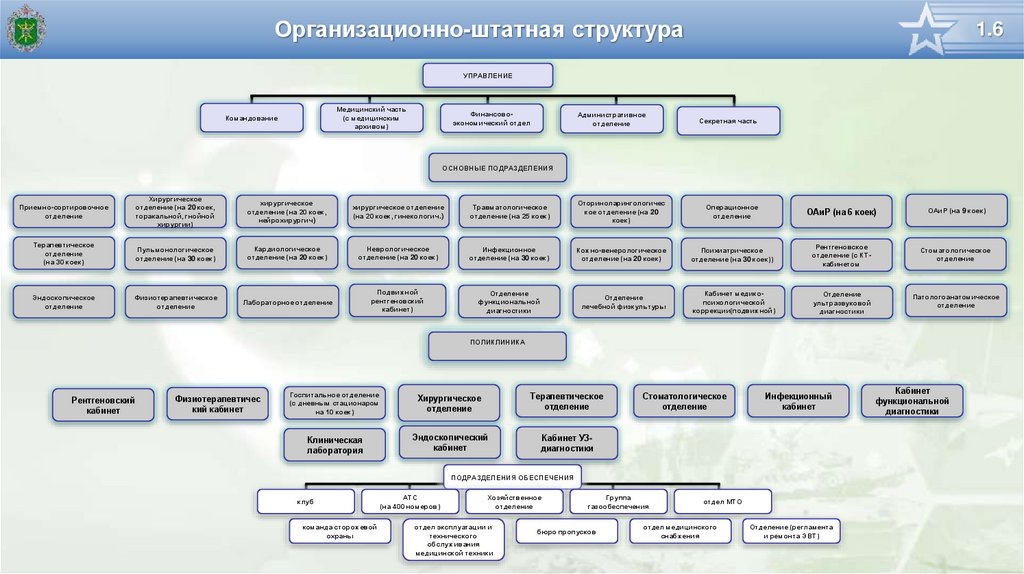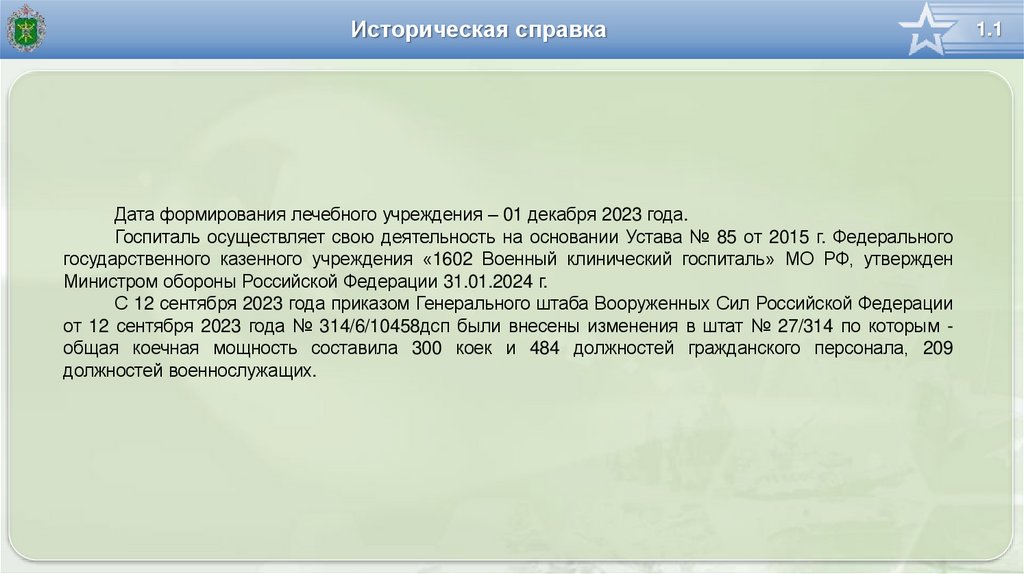 от 12 сентября 2023 года № 314/6/10458дсп были внесены изменения в штат № 27/314 по которым общая коечная мощность составила 300 коек и 484 должностей гражданского персонала, 209