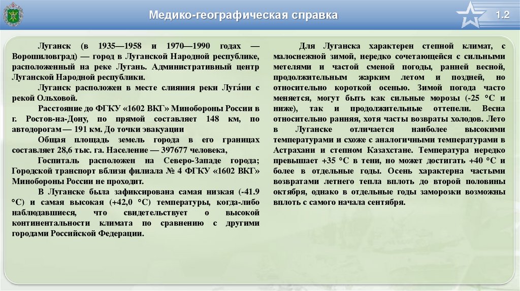 Медико-географическая справкаЛуганск (в 1935—1958 и 1970—1990 годах —