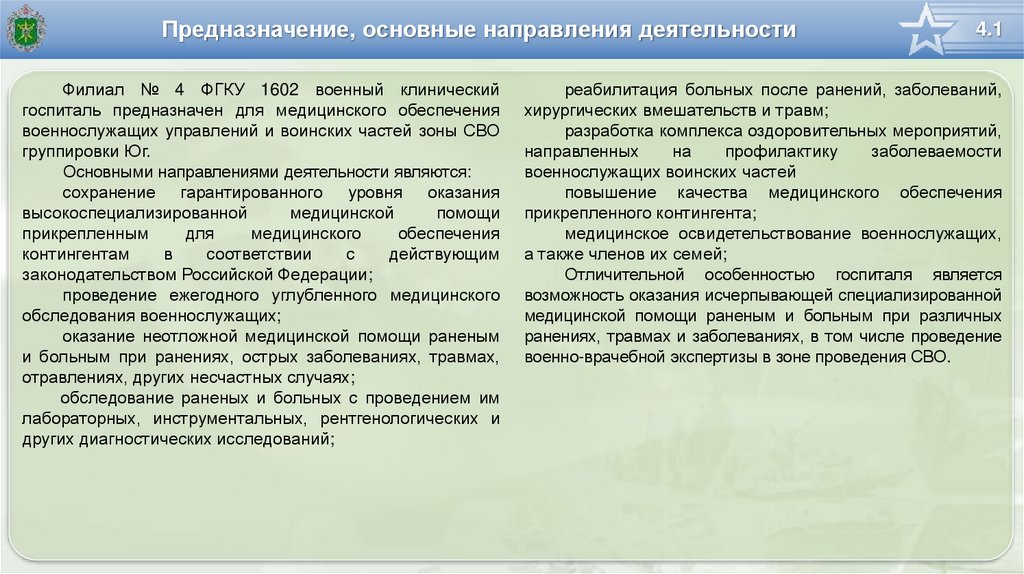 Филиал № 4 ФГКУ «1602 ВКГ» Минобороны России осуществляет
