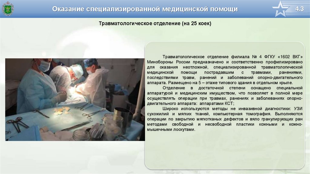 здравоохранения в ФГКУ «1602 ВКГ» Минобороны России