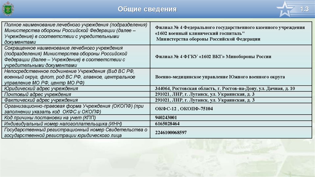 Общие сведенияПолное наименование лечебного учреждения (подразделения)
