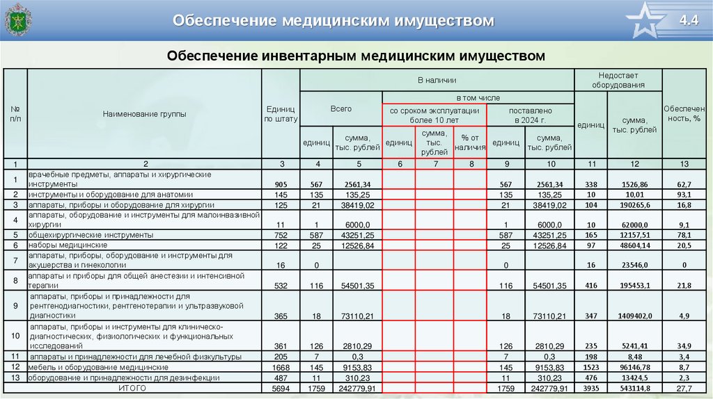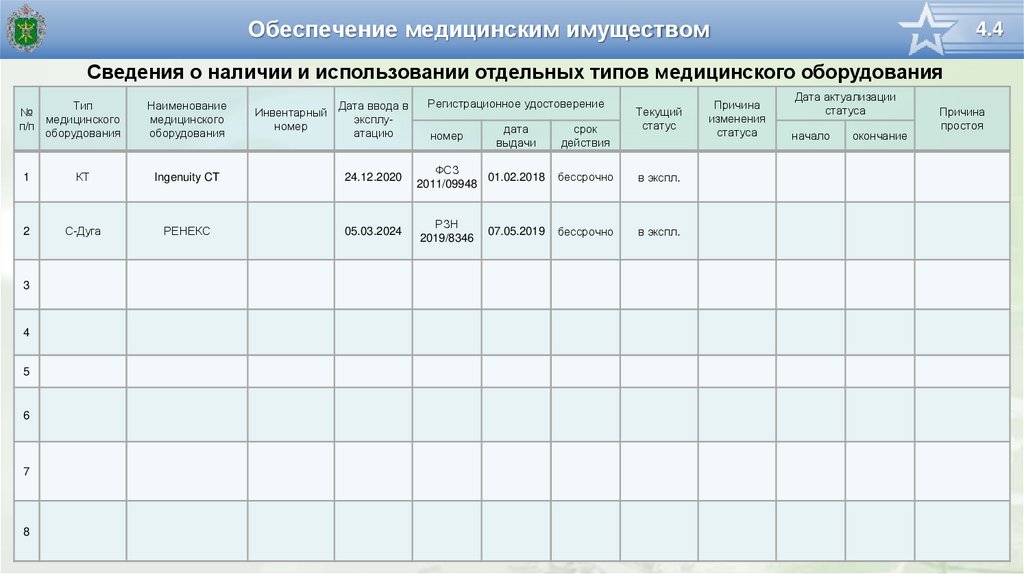 Сведения о наличии и использовании отдельных типов медицинского оборудования