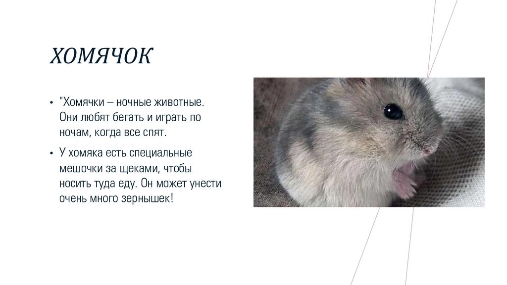 ХОМЯЧОК• "Хомячки – ночные животные.