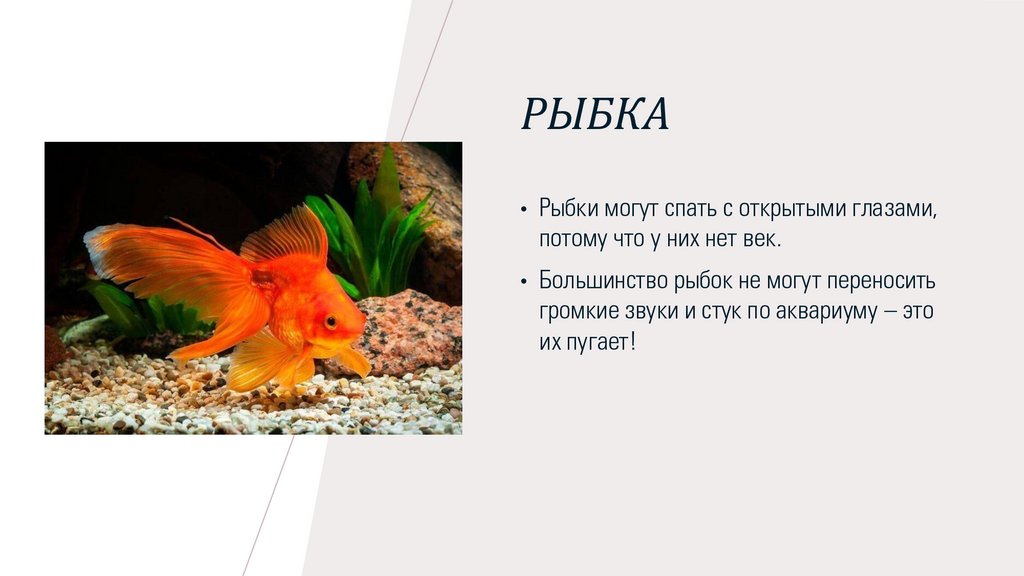 РЫБКА• Рыбки могут спать с открытыми глазами,
