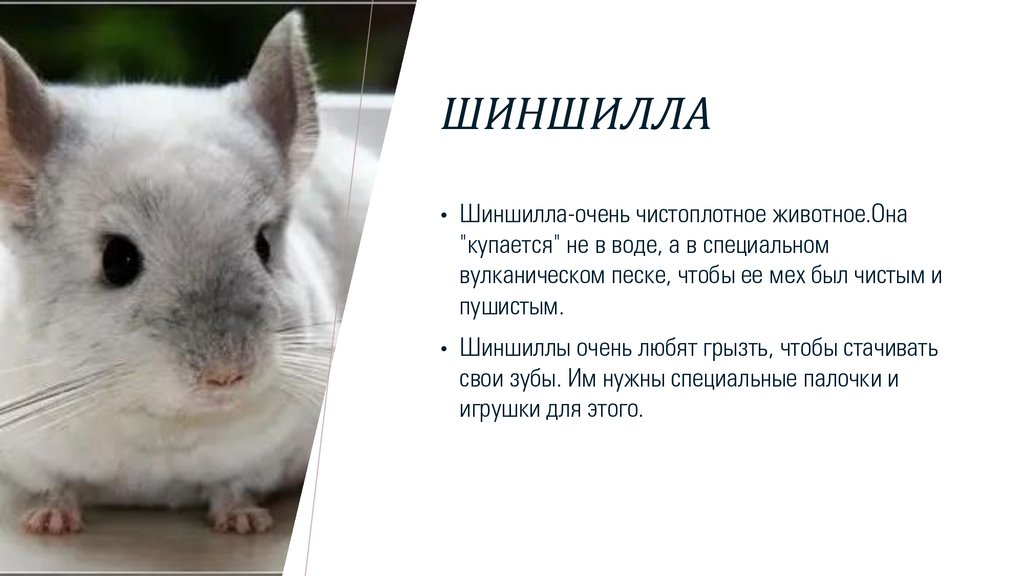 ШИНШИЛЛА• Шиншилла-очень чистоплотное животное.Она