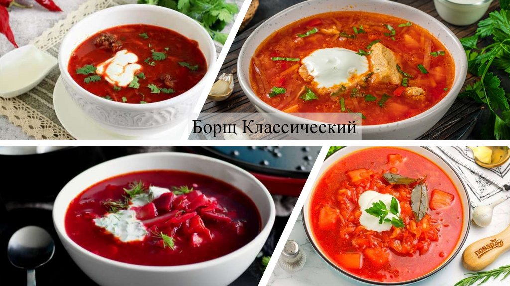 Разновидность борщей и пирогов
