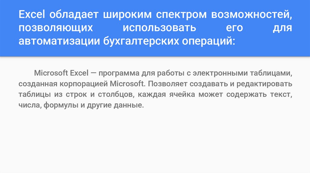 ● В отличие от специализированных бухгалтерских программ, Excel не
