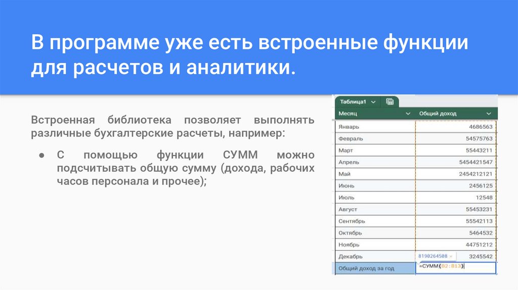 В программе уже есть встроенные функциидля расчетов и аналитики.