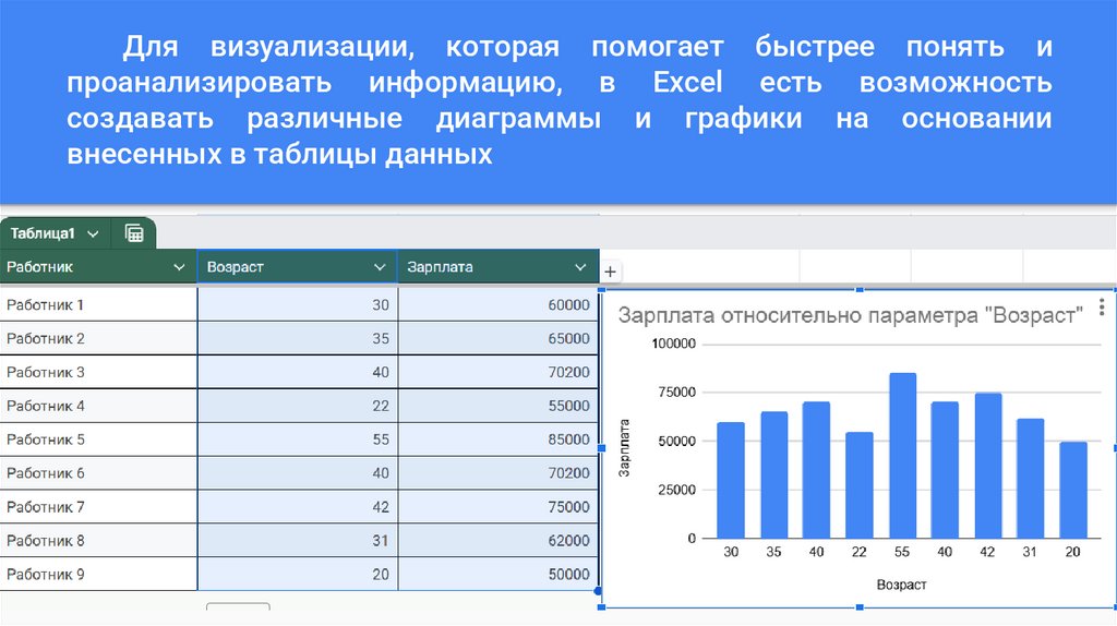 Для визуализации, которая помогает быстрее понять ипроанализировать информацию, в Excel есть возможность