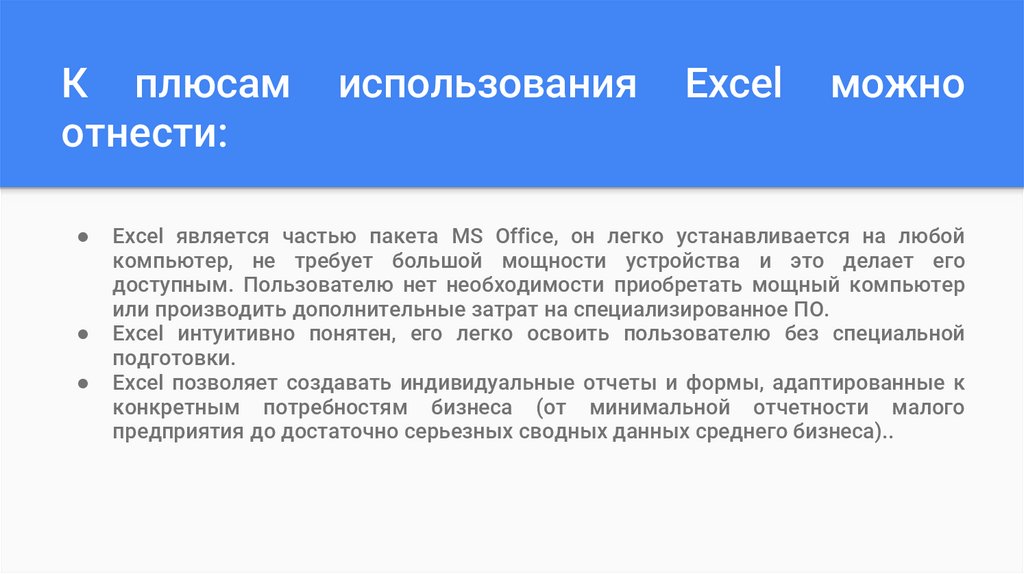 Excel интуитивно понятен, его легко освоить пользователю без специальной