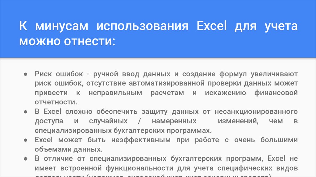 К минусам использования Excel для учетаможно отнести: