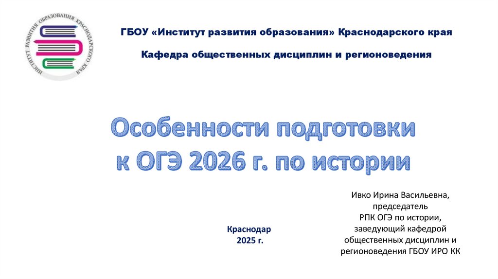 ГБОУ «Институт развития образования» Краснодарского краяКафедра общественных дисциплин и регионоведения