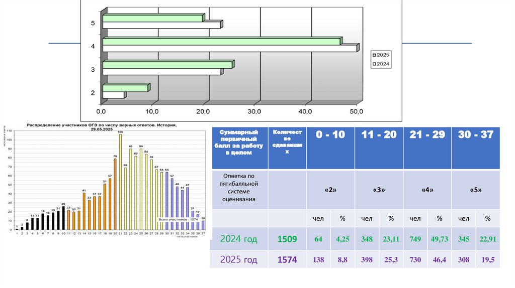 Динамика результатов ОГЭ по историиСуммарный