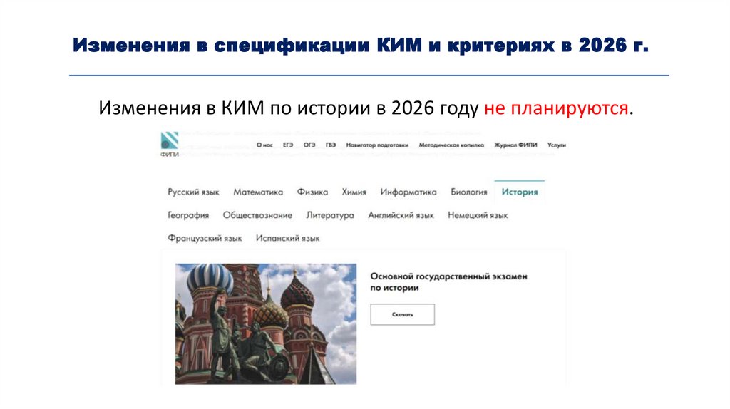 Изменения в спецификации КИМ и критериях в 2026 г.Изменения в КИМ по истории в 2026 году не планируются.