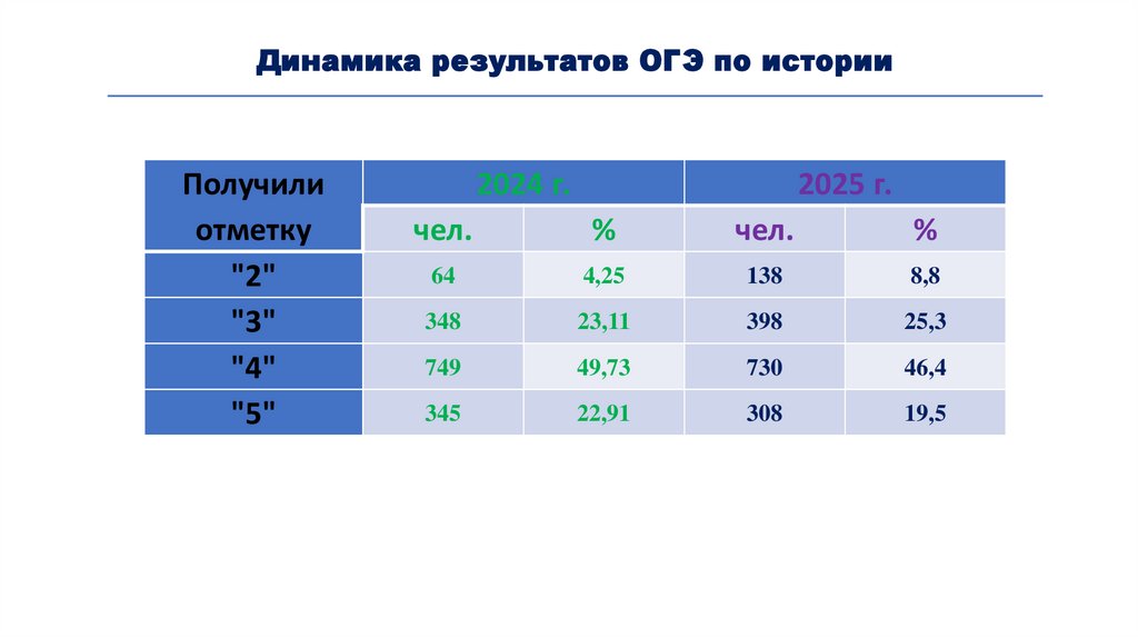 Динамика результатов ОГЭ по историиПолучили