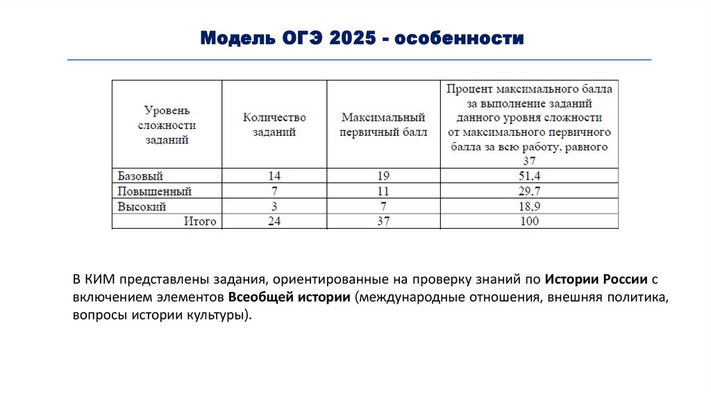 Модель ОГЭ 2025 - особенностиВ КИМ представлены задания, ориентированные на проверку знаний по Истории России с