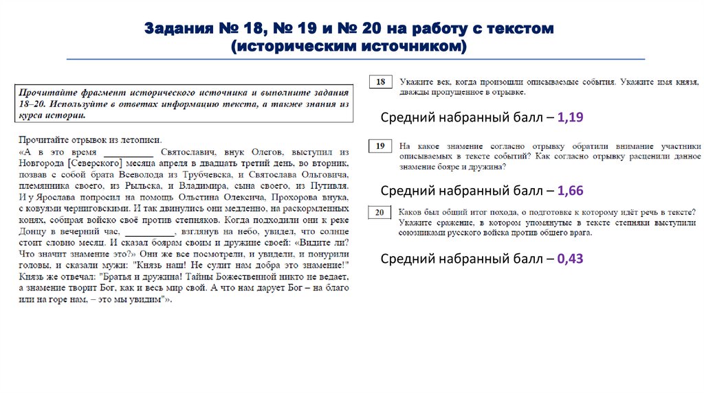 Задания № 18, № 19 и № 20 на работу с текстом(историческим источником)