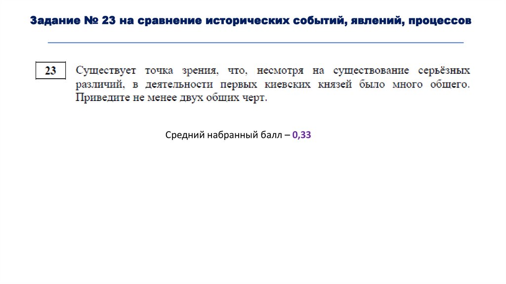 Задание № 23 на сравнение исторических событий, явлений, процессовСредний набранный балл – 0,33