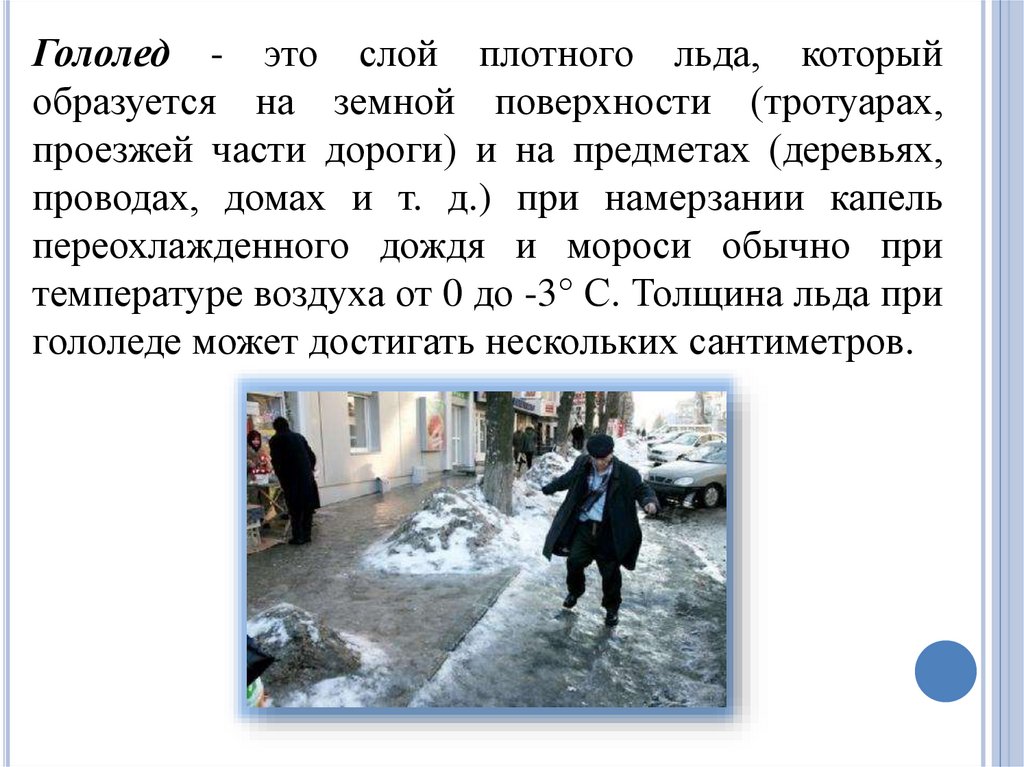 Гололед - это слой плотного льда, которыйобразуется на земной поверхности (тротуарах,