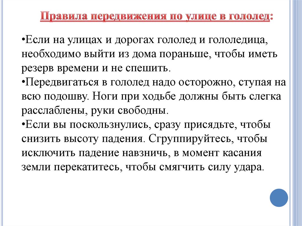 •Если на улицах и дорогах гололед и гололедица,необходимо выйти из дома пораньше, чтобы иметь