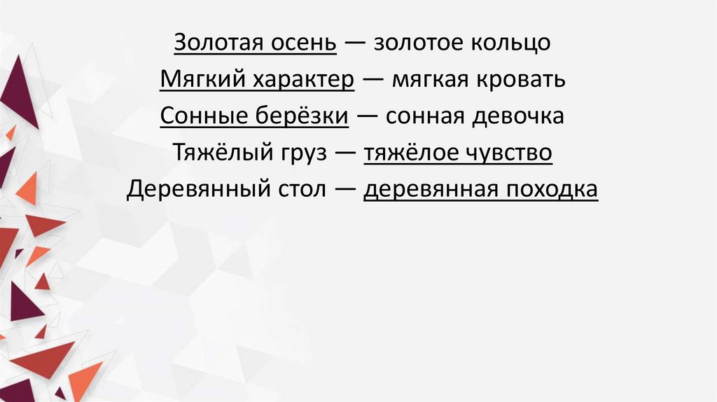Например, словосочетание "бархатный сезон" (осенние месяцы сентябрь, октябрь - на юге). Но нельзя сказать: "бархатная осень", к